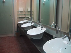 コタキナバル空港のラウンジの化粧室の洗面台。 ドライヤーあります。  |