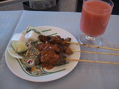クアラルンプール→成田 グァバジュースとサテー。  |