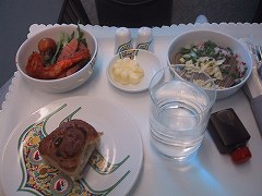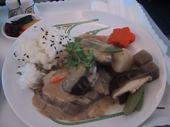 コタキナバル→クアラルンプール 搭乗するとすぐに飲み物サービスがあります。 メインディッシュは2種類でした。  |